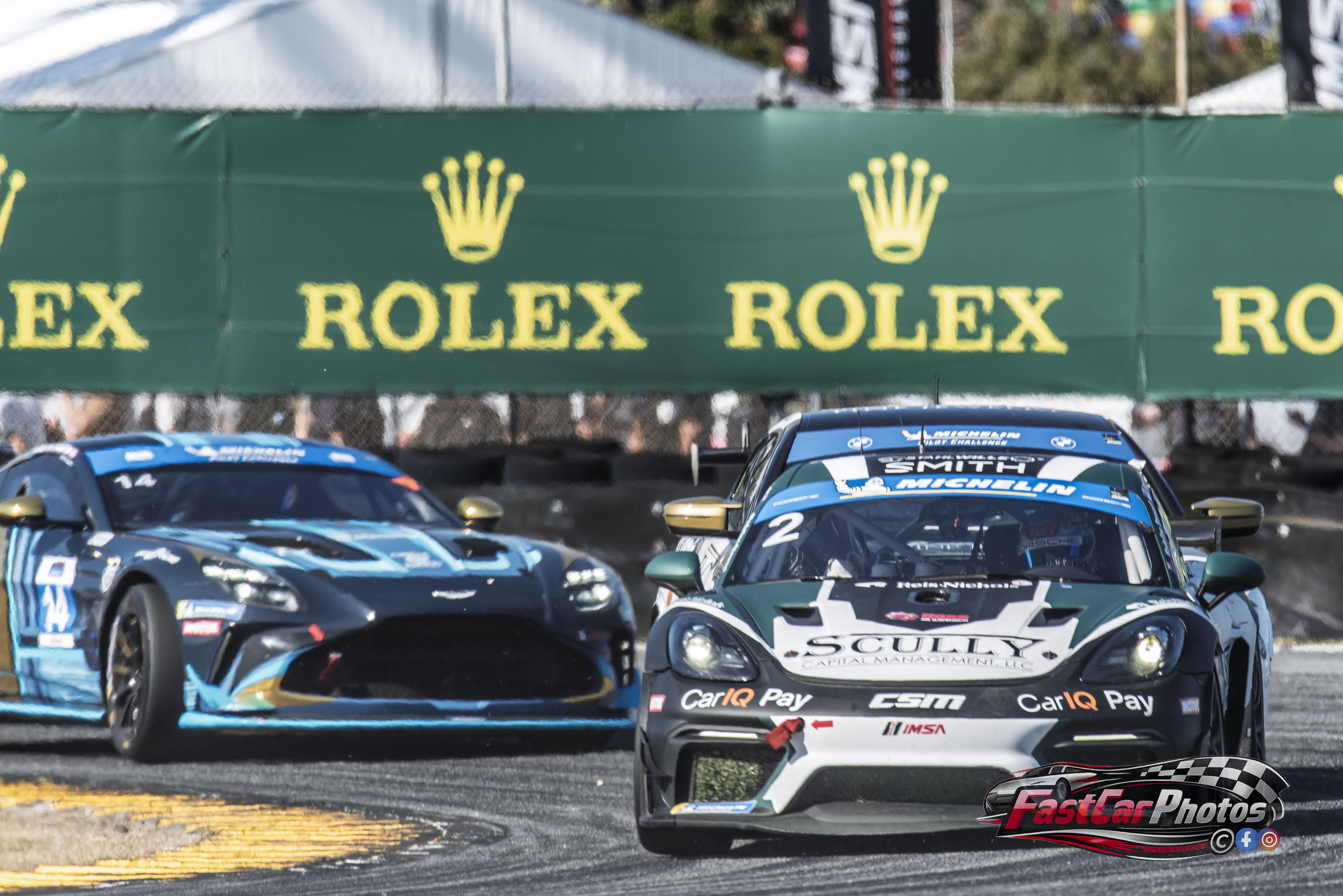 The team of Morgan Burkhard, Madeline Stewart, and Gordon Scully in the CSM Porsche 718 GT4 RS CS at the 2026 BMW M Endurance Challenge at Daytona on January 23, 2026