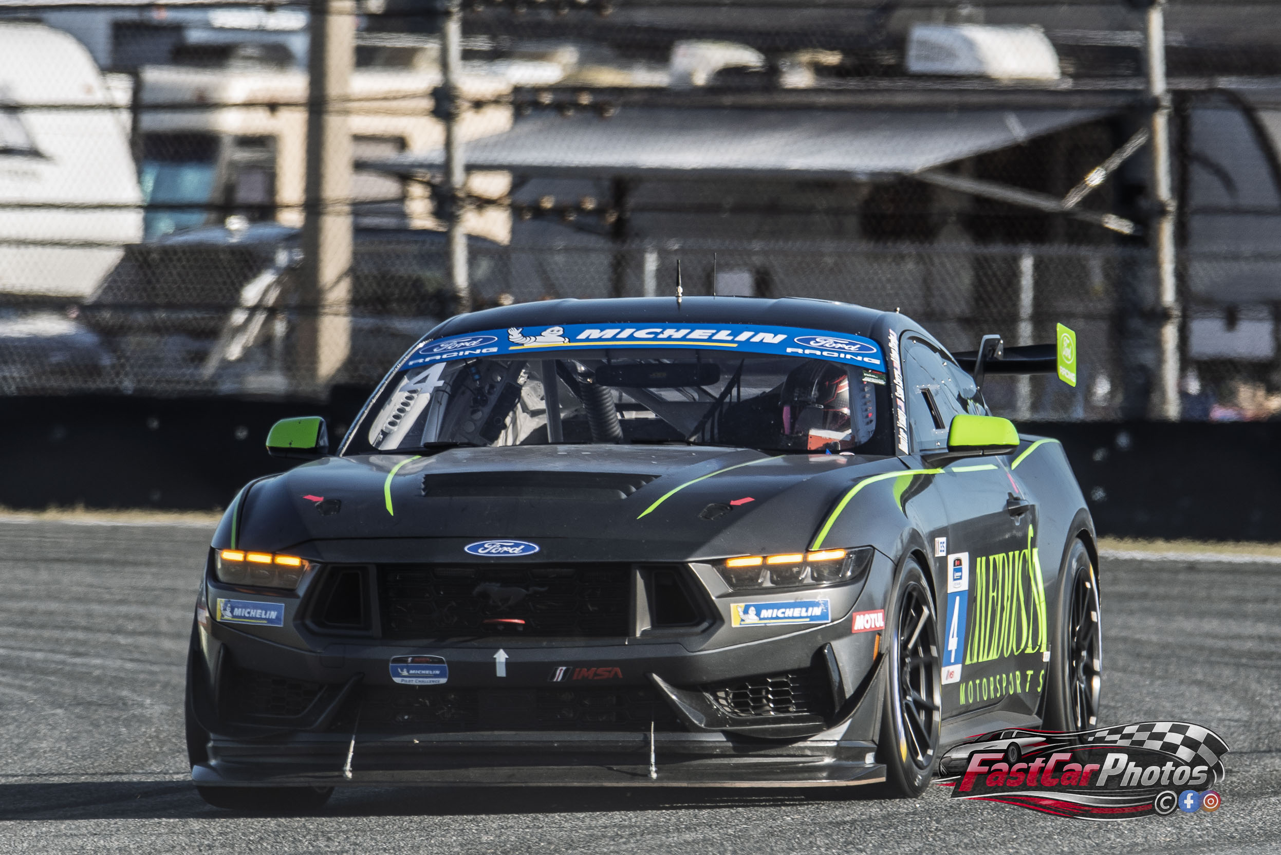The team of Athan Sterling, Hunter Yeany, and Sam Corry in the Medusa Motorsports Ford Mustang GT4 at the 2026 BMW M Endurance Challenge at Daytona on January 23, 2026