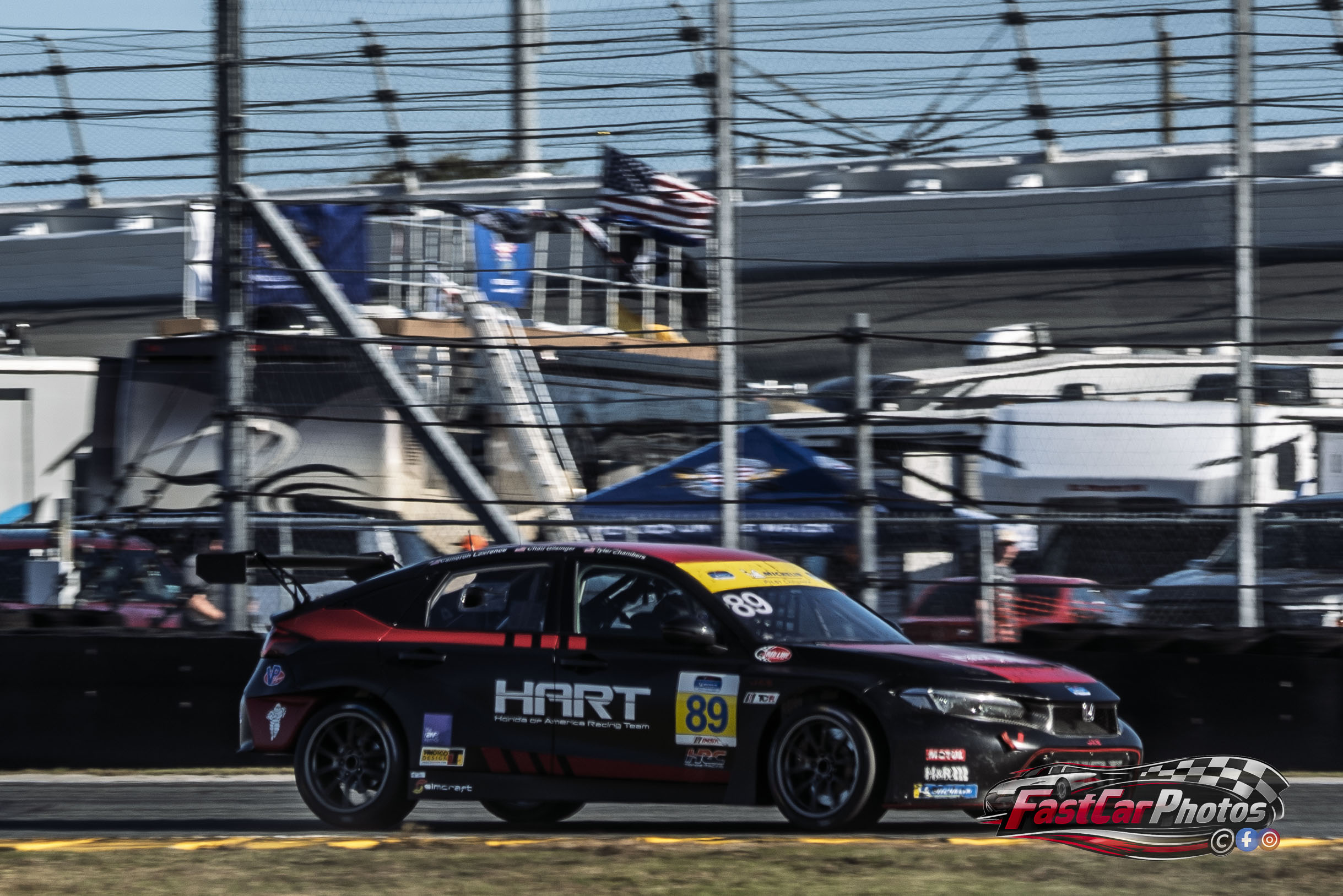 The team of Chad Gilsinger, Tyler Chambers, and Cameron Lawrence in the HART Honda Civic FL5 TCR at the 2026 BMW M Endurance Challenge at Daytona on January 23, 2026