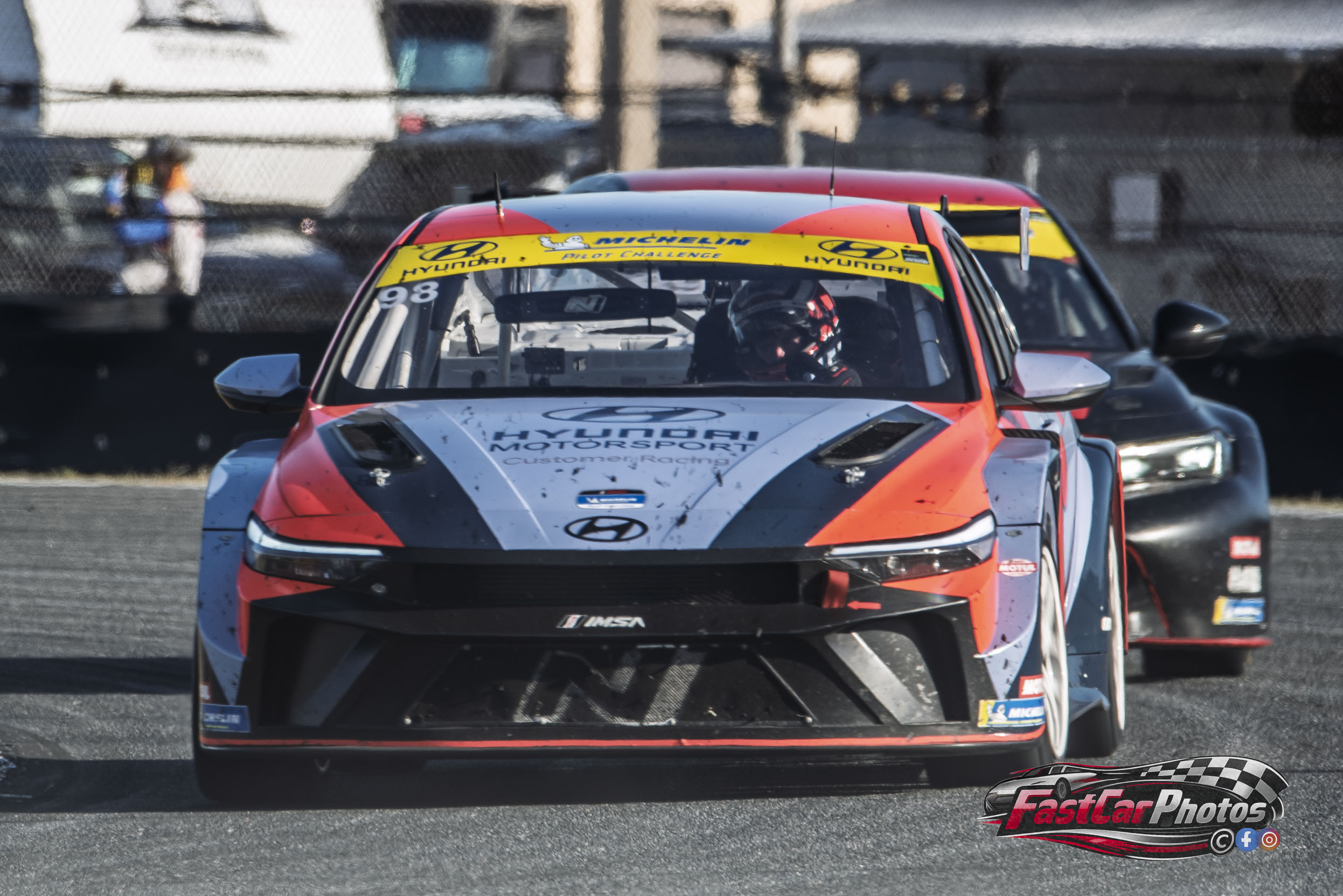 The team of Madison Aust, Mark Wilkins, and Andre Castro in the Bryan Herta Autosport with Curb Agajanian Hyundai Elantra N TCR at the 2026 BMW M Endurance Challenge at Daytona on January 23, 2026