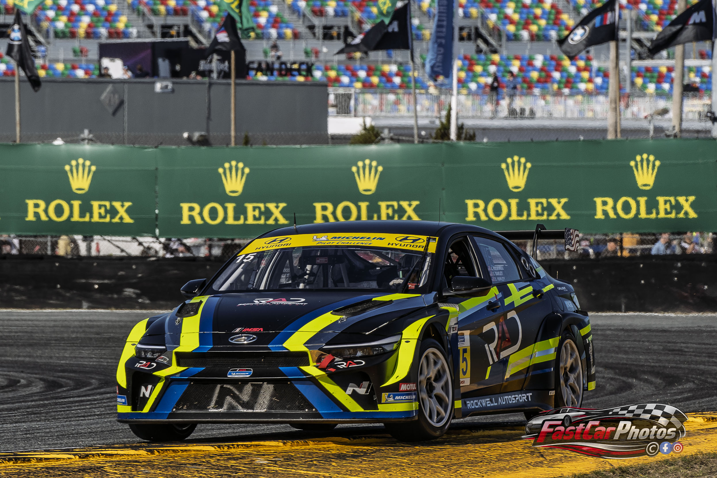 The team of Alex Rockwell, Doug Oakley and Daniel Hanley in the Rockwell Autosport Development Hyundai Elantra N TCR at the 2026 BMW M Endurance Challenge at Daytona on January 23, 2026