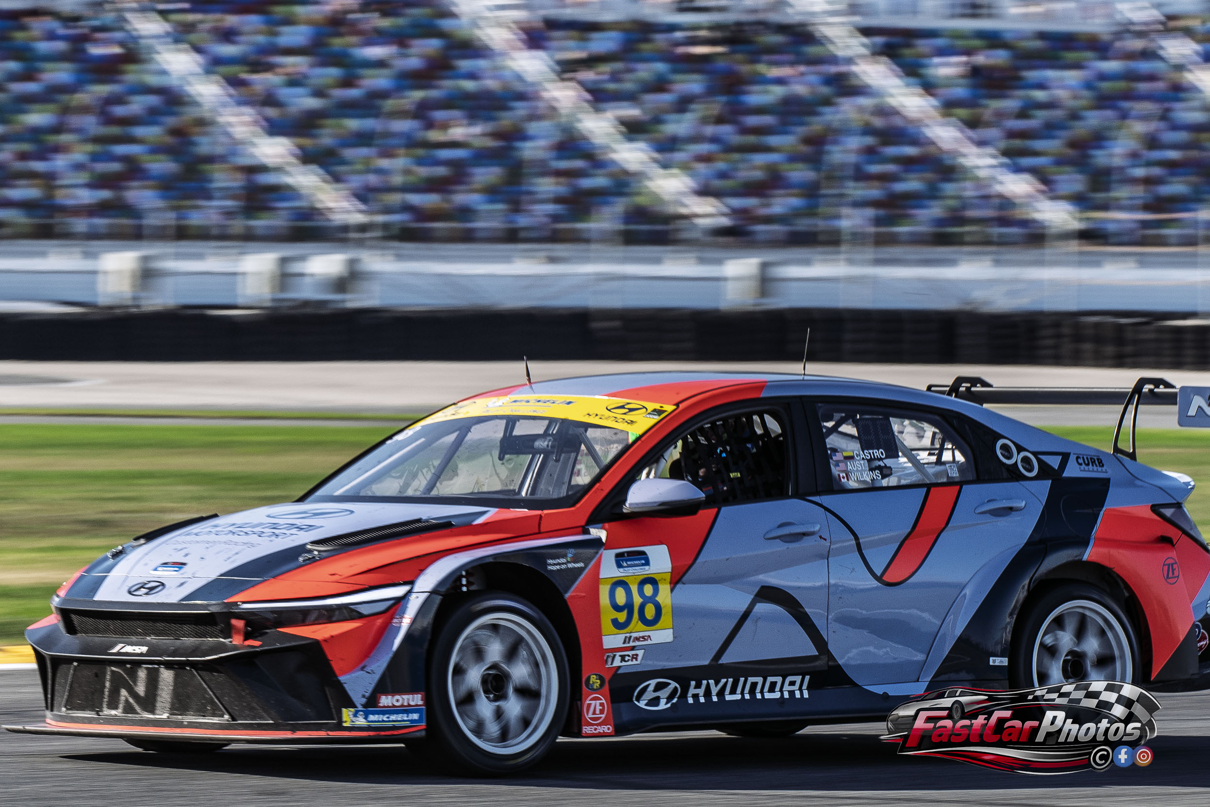 The team of Madison Aust, Mark Wilkins, and Andre Castro in the Bryan Herta Autosport with Curb Agajanian Hyundai Elantra N TCR at the 2026 BMW M Endurance Challenge at Daytona on January 23, 2026