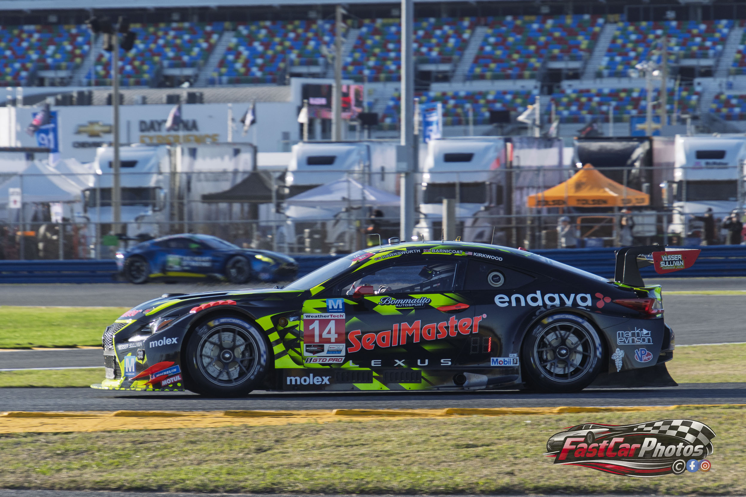 The team of Jack Hawksworth, Ben Barnicoat, and Kyle Kirkwood in the Vasser Sullivan Racing Lexus RC F GT3 at the 2026 Roar Before the Rolex 24 on January 16, 2026