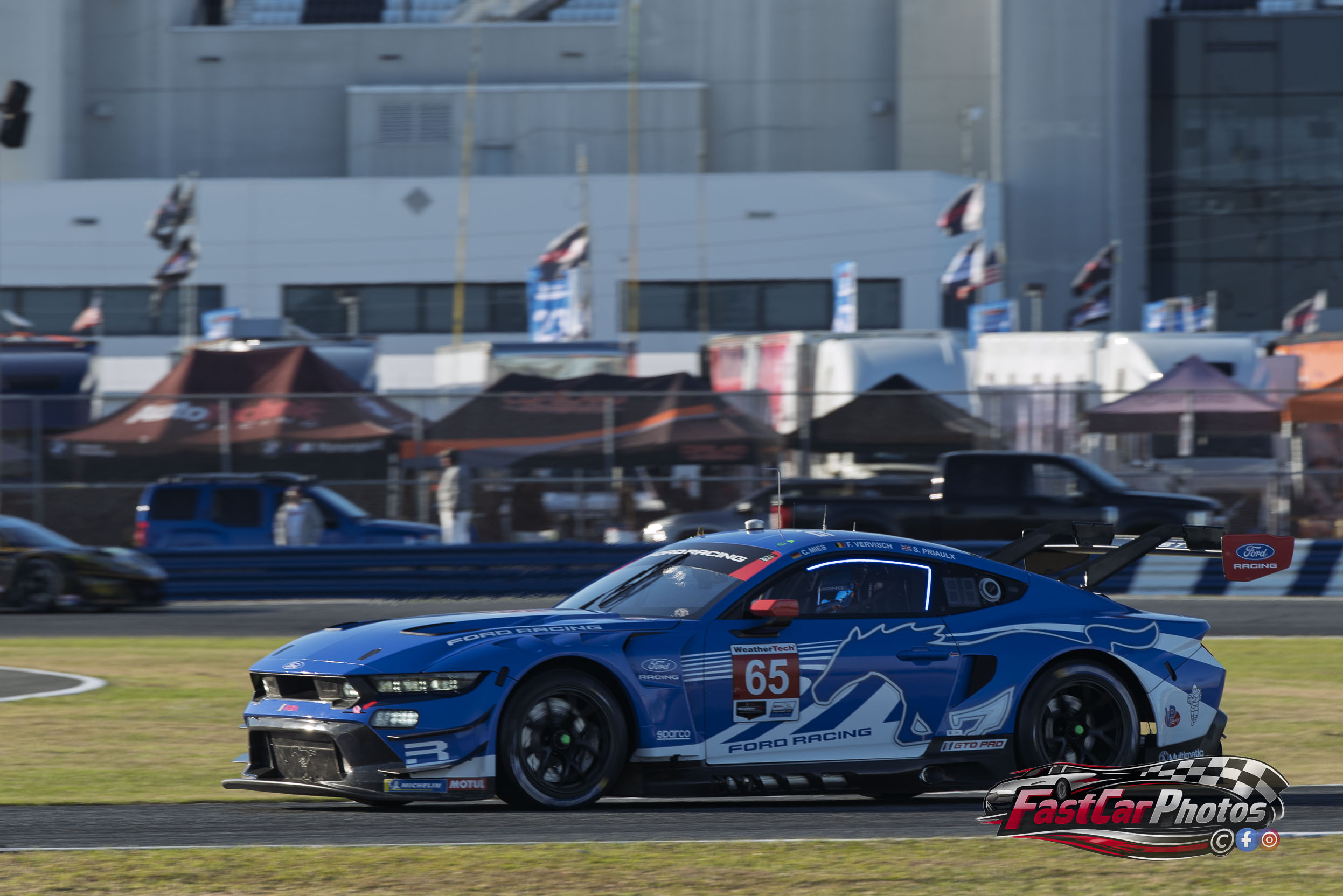 The team of Christopher Mies, Frederic Vervisch, and Sebastian Priaulx in the Ford Multimatic Motorsports Ford Mustang GT3 at the 2026 Roar Before the Rolex 24 on January 16, 2026