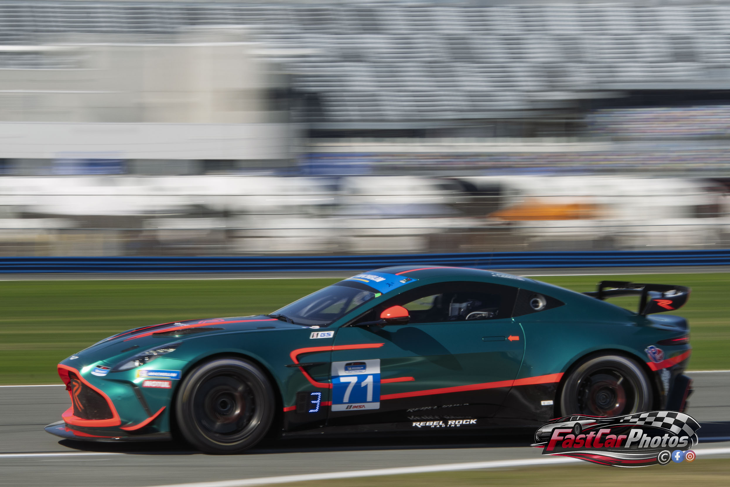 The team of Frank DePew, Robin Liddell, and Andrew Davis in the Rebel Rock Racing Aston Martin Vantage AMR GT4 Evo at the 2026 Roar Before the Rolex 24 on January 16, 2026