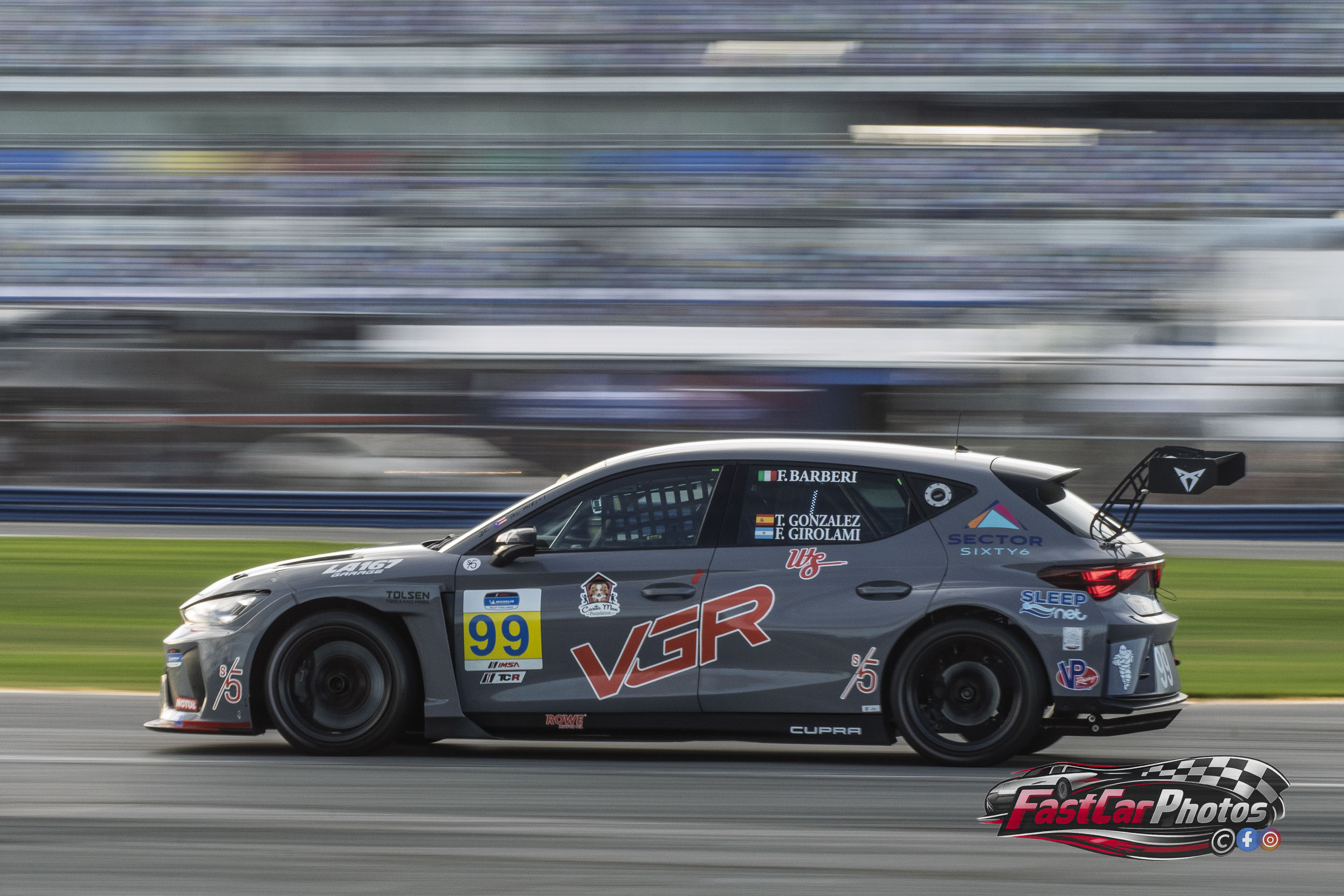 The team of Tyler Gonzalez, Franco Girolami, and Filippo Barberi in the Victor Gonzalez Racing Cupra Leon VZ TCR at the 2026 Roar Before the Rolex 24 on January 17, 2026