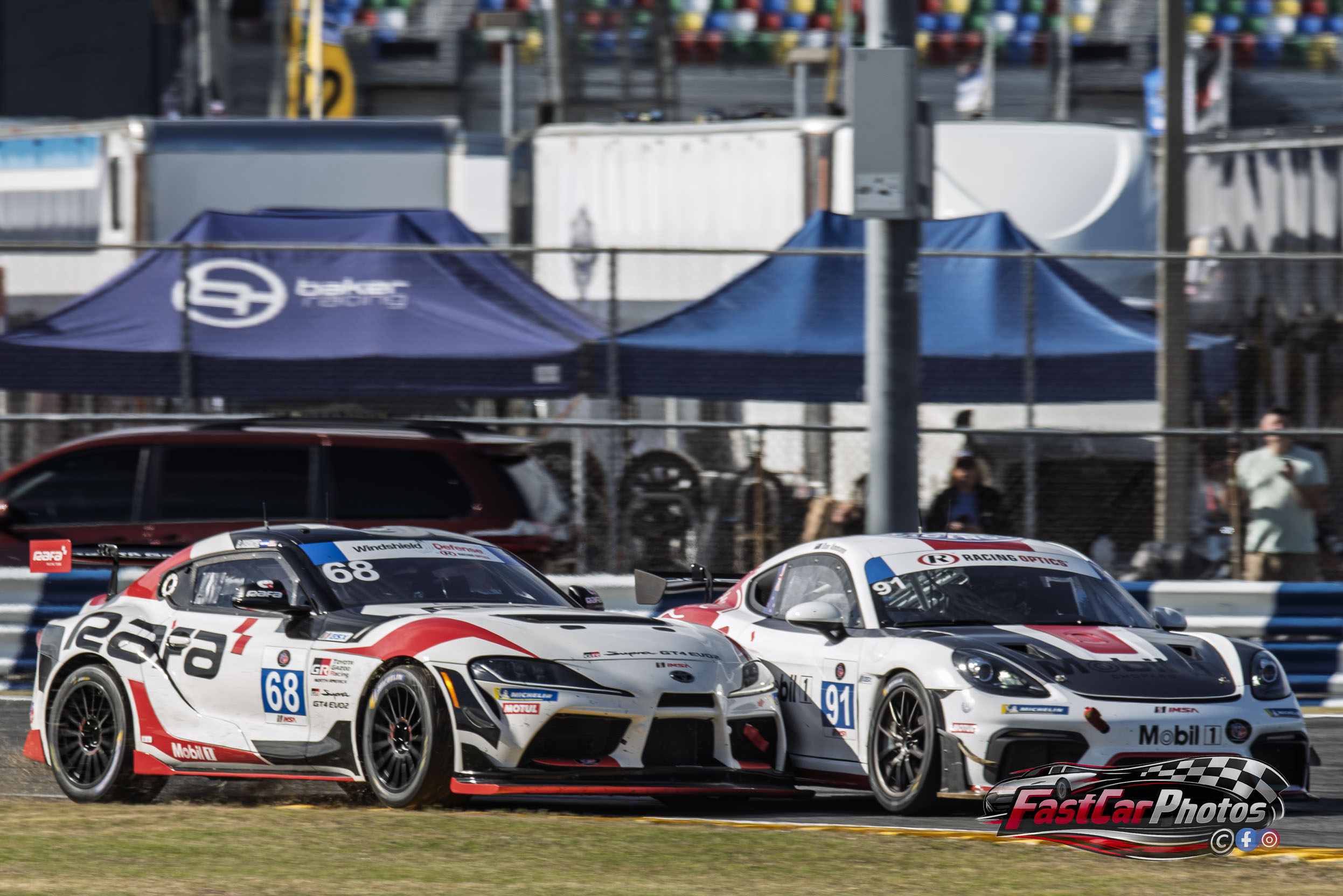 Rafa Martinez in the Ave Motorsports Toyota GR Supra GT4 EVO2 and Dan Ammann in the VRC Motorsports Group, LLC. Porsche 718 GT4 RS CS at the 2026 Roar Before the Rolex 24 on January 17, 2026