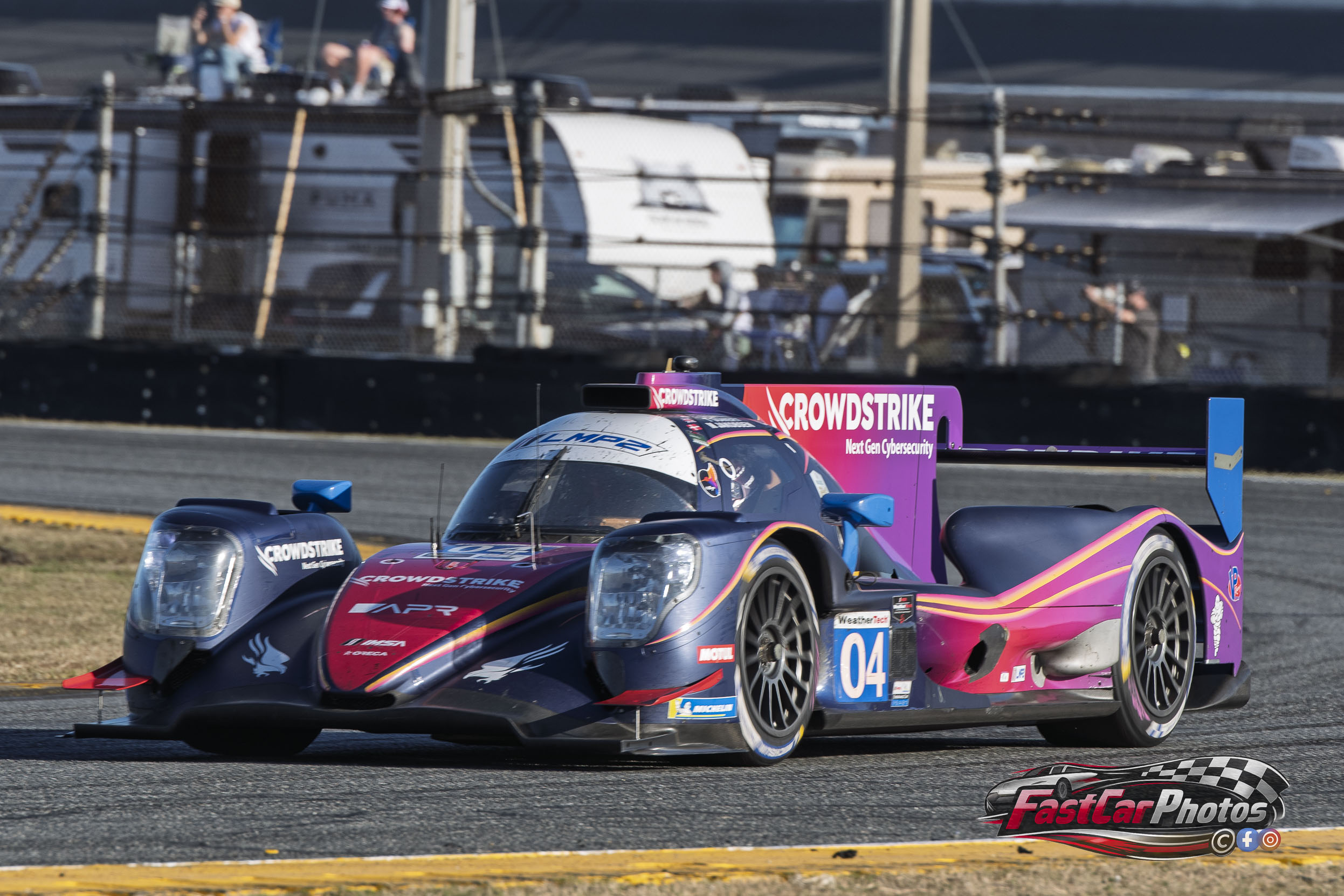 The team of George Kurtz, Alex Quinn, Toby Sowery, and Maithe Jakobsen in the Crowdstrike Racing by APR USA ORECA LMP2 07 at the 2026 Rolex 24 on January 24, 2026