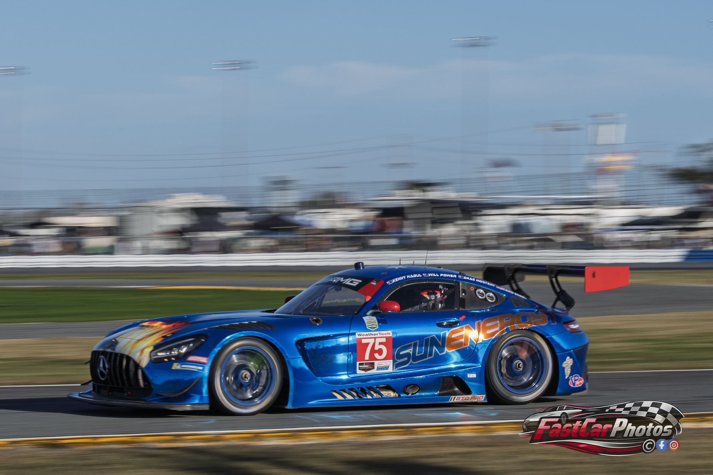 The team of Kenny Habul, Maro Engel, Will Power, and Chaz Mostert in the 75 Express Mercedes-AMG GT3 at the 2026 Rolex 24 on January 24, 2026
